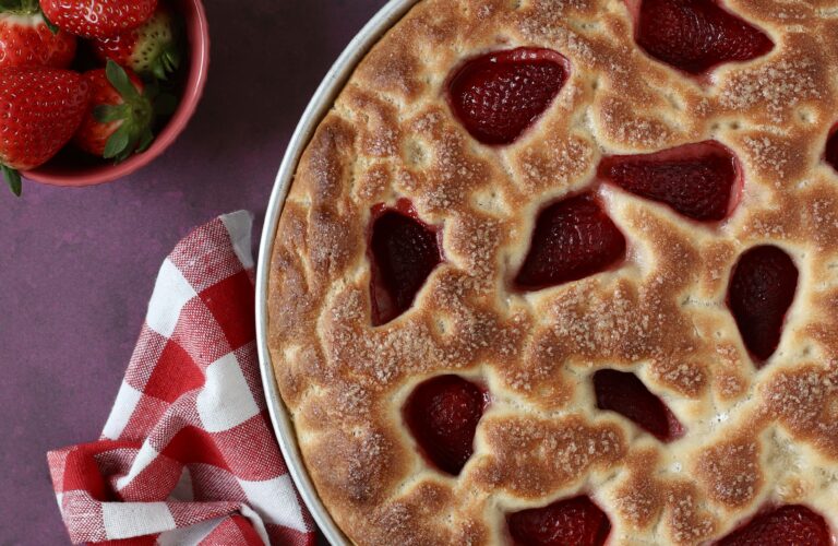 Ho sempre pensato alla focaccia come un must dell’aperitivo insieme, magari ad un bel tagliere di salumi e formaggi. Invece ho scoperto che si possono preparare delle versioni dolci, altrettanto deliziose: perfette da assaporare a colazione ancora tiepide o magari per merenda. Sul blog ne trovate già una versione estiva con pesche e lamponi, ma questa versione primaverile con panna e fragole è davvero strepitosa: soffice e profumata, è perfetta anche da servire a fine pasto, magari tiepida e accompagnata da un po’ di crema inglese calda. Vi è venuta l’acquolina in bocca? Allora eccovi la ricetta.