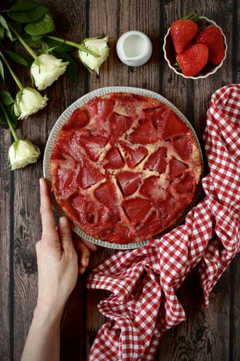 Questa torta rovesciata di fragole è una di quelle preparazioni che mettono subito di buon umore. È semplice, genuina, ma allo stesso tempo ha quell’effetto “wow” quando la si capovolge e si scopre lo strato di fragole lucide e caramellate. È il classico dolce da condividere, perfetto per una merenda in famiglia o per concludere un pranzo senza troppi fronzoli, ma con qualcosa di davvero buono fatto in casa.