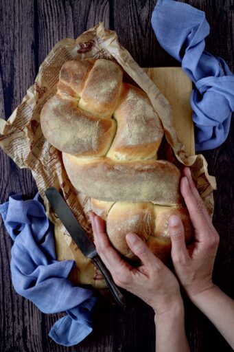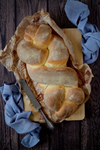 Oltre ad essere buona, questa treccia ha anche qualcosa di speciale alla vista: la sua forma intrecciata, dorata e rustica la rende perfetta da portare in tavola come protagonista. Mi piace sistemarla al centro, magari durante un pranzo speciale, quando anche l’occhio vuole la sua parte e ogni dettaglio contribuisce a creare un’atmosfera accogliente.